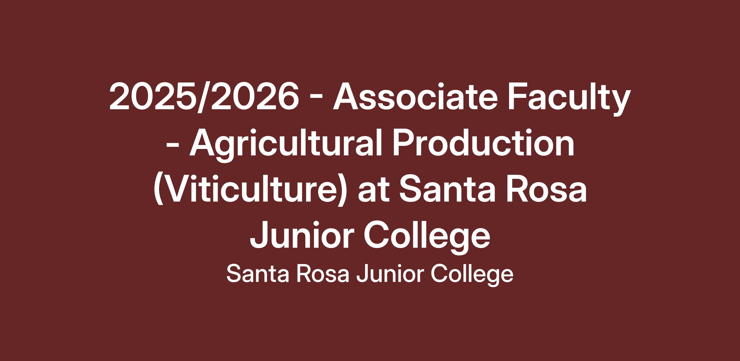 Provide excellent instruction and faculty support to students, which may include evening, weekend, online or hybrid and/or off-campus assignments. Provide academic assistance and related services to students during scheduled office hours. Demonstrate sensitivity to and understanding of diverse academic, socioeconomic, cultural, disability, gender identity, sexual orientation, and ethnic backgrounds of community college students, faculty and staff. Maintain currency in field(s) of expertise. Associate faculty focus primarily on providing instruction and/or student services. Associate faculty are typically not required to participate in District or department service such as committee work, evaluations, student learning outcomes assessment, and hiring committees, but may be asked to perform these services for additional compensation.Please see the All Faculty Association Contract for more information. The examples of duties listed above are representative of those that must be met by a faculty member to successfully perform the essential functions of this job.Reasonable accommodations may be made to enable individuals with disabilities to perform the essential job functions. SELECTION PROCESS: If the department has an immediate need to add candidates to their pool, they will review applications. If the department does not have an immediate need to add candidates to their pool, applications remain in the queue for consideration until the need arises, or for up to one year. If selected, candidates will be invited to an interview with a Screening and Interviewing Committee. Selected candidates who are not given an immediate assignment will remain in the pool for four years. DEPARTMENT DESCRIPTION: The Agriculture/Natural Resources Department at Santa Rosa Junior College is made up of eight full-time and over sixty-five associate instructors teaching over 2,500 students.It is the largest community college agriculture program in California, and has been recognized as an Outstanding Agriculture Community College Program by the California Agriculture Teachers Association (CATA).The Agriculture/Natural Resources Department includes 11 diversified program areas with over 20 different degrees and certificates serving the needs of career-focused and transfer students. The Department also includes a dedicated hands-on learning laboratory in Shone Farm, a 365-acre diversified farm in the Russian River Valley. Shone Farm includes 120 acres of forest, 100 acres of pasture for various livestock herds, 90 acres of vineyard, 12 acres for crop production, 4 acres of olive and apple trees, and 39 acres of buildings and improvements. Shone Farm also features a bonded winery that produces award-winning wine, and a large agricultural pavilion for classes, events, and equestrian activities. Altogether, it is one of the largest agriculture sites in the California Community Colleges system, and a place where SRJC students learn commercial production techniques that prepare them for the workplace or transfer to a four-year university.Agriculture and Natural Resources Department Website