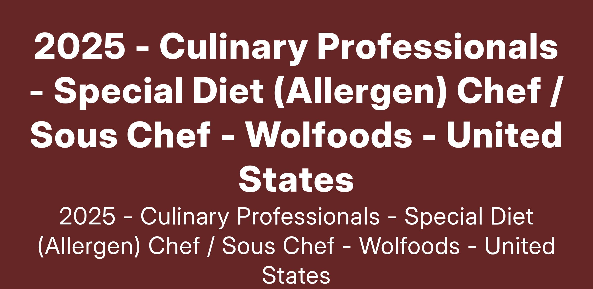2025 - Culinary Professionals - Special Diet (Allergen) Chef / Sous Chef - Wolfoods - United States