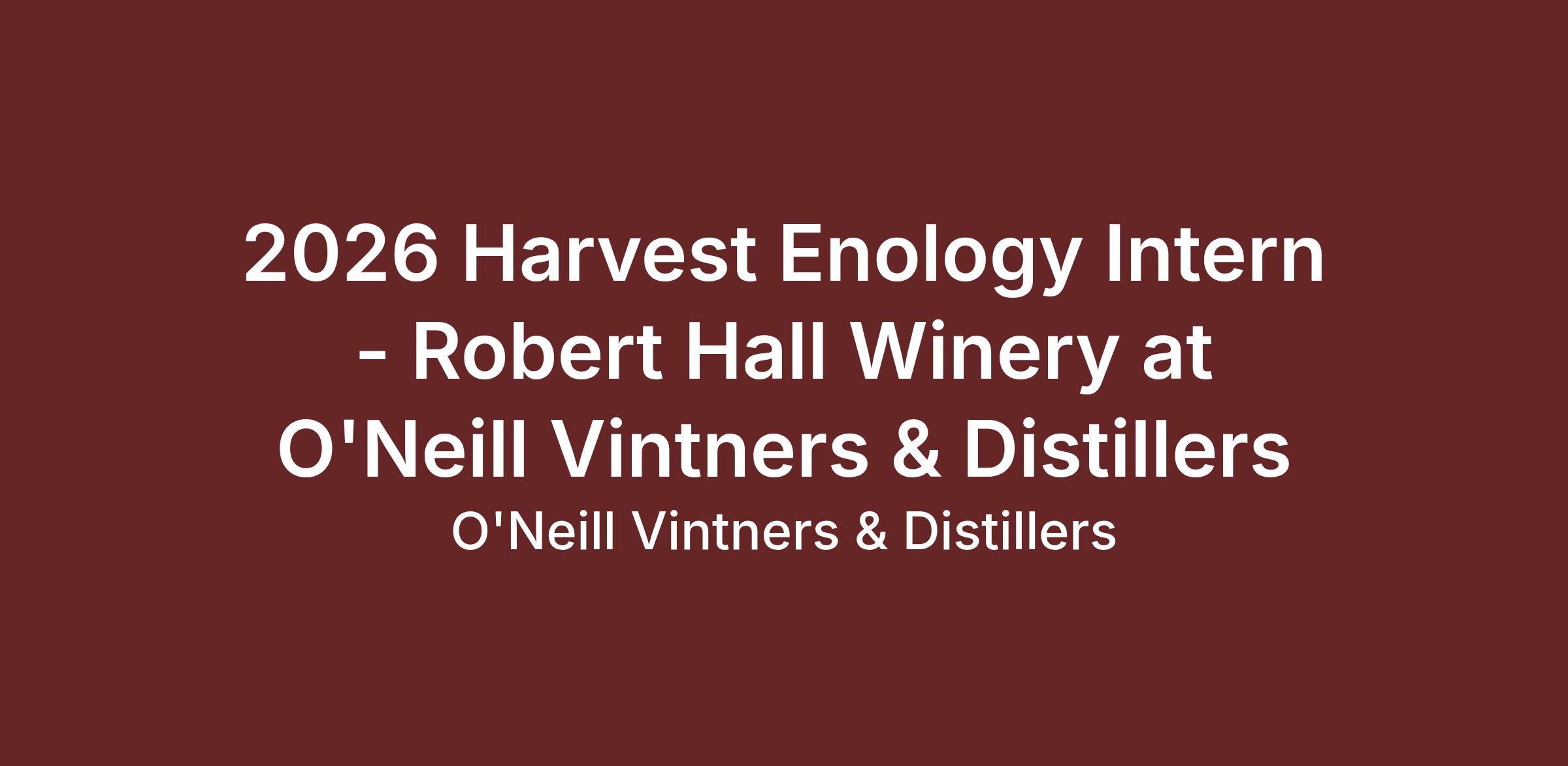 Are you fascinated by the science of winemaking and eager to dive into the art and craft behind every bottle? Join the O'Neill team as an Enology Intern and gain invaluable hands-on experience in the laboratory and cellar, working alongside skilled winemakers and the cellar team. This internship offers an exciting opportunity to participate in every step of the winemaking process, from grape to glass. As a Certified B Corporation, we are committed to balancing purpose and profit, prioritizing sustainability, community, and ethical business practices. This is your chance to be part of a company that’s using winemaking as a force for good.