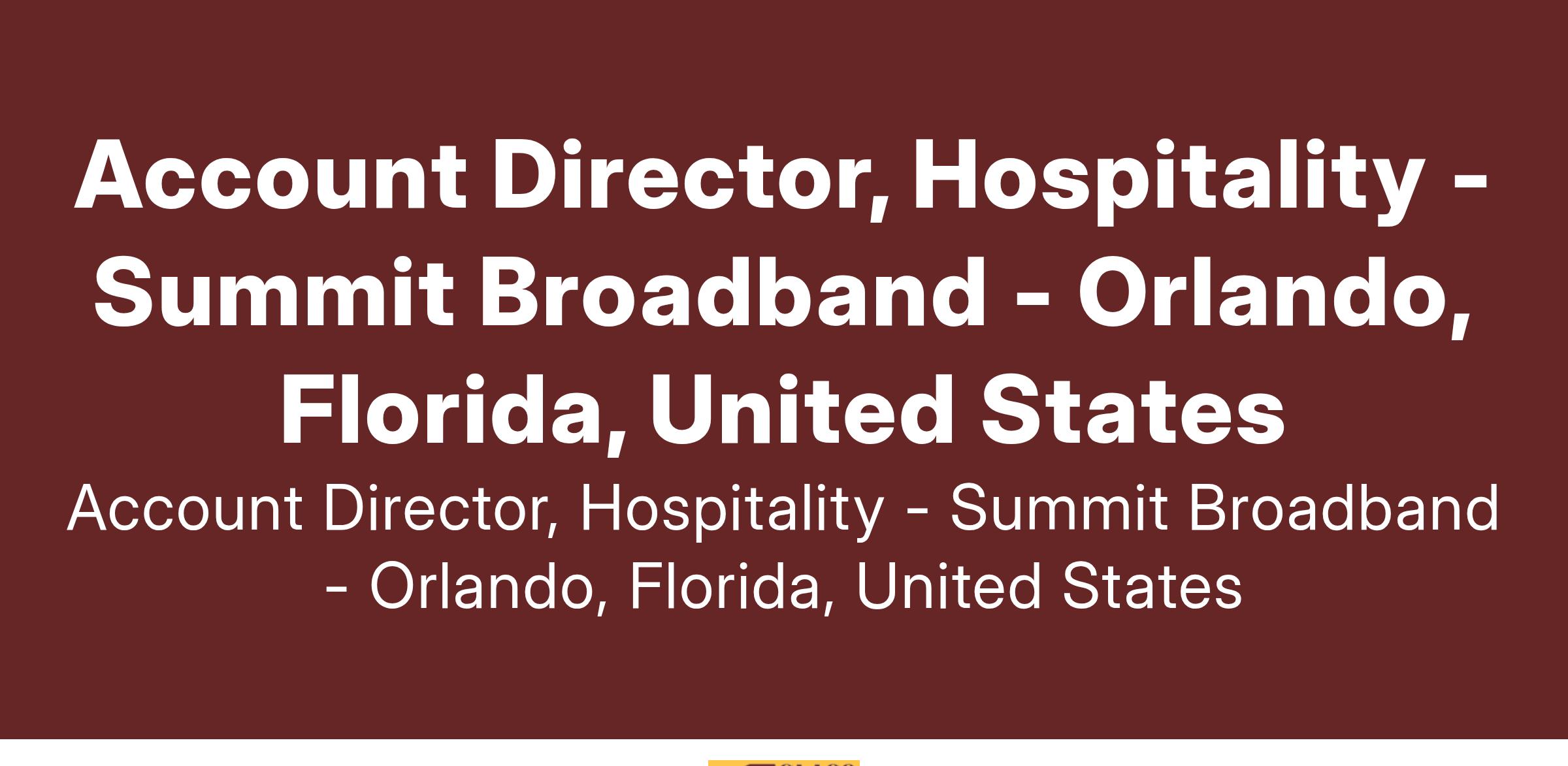 Summit Broadband Inc. is a cutting edge, fiber-based broadband provider delivering best in class Residential, Commercial, Wholesale and Hospitality technology solutions. This growing, dynamic high-tech company headquartered in Central Florida, is seeking a Account Director for Hospitality. The new Summit Broadband is in incredible growth mode fueled by team members dedicated to being the best.