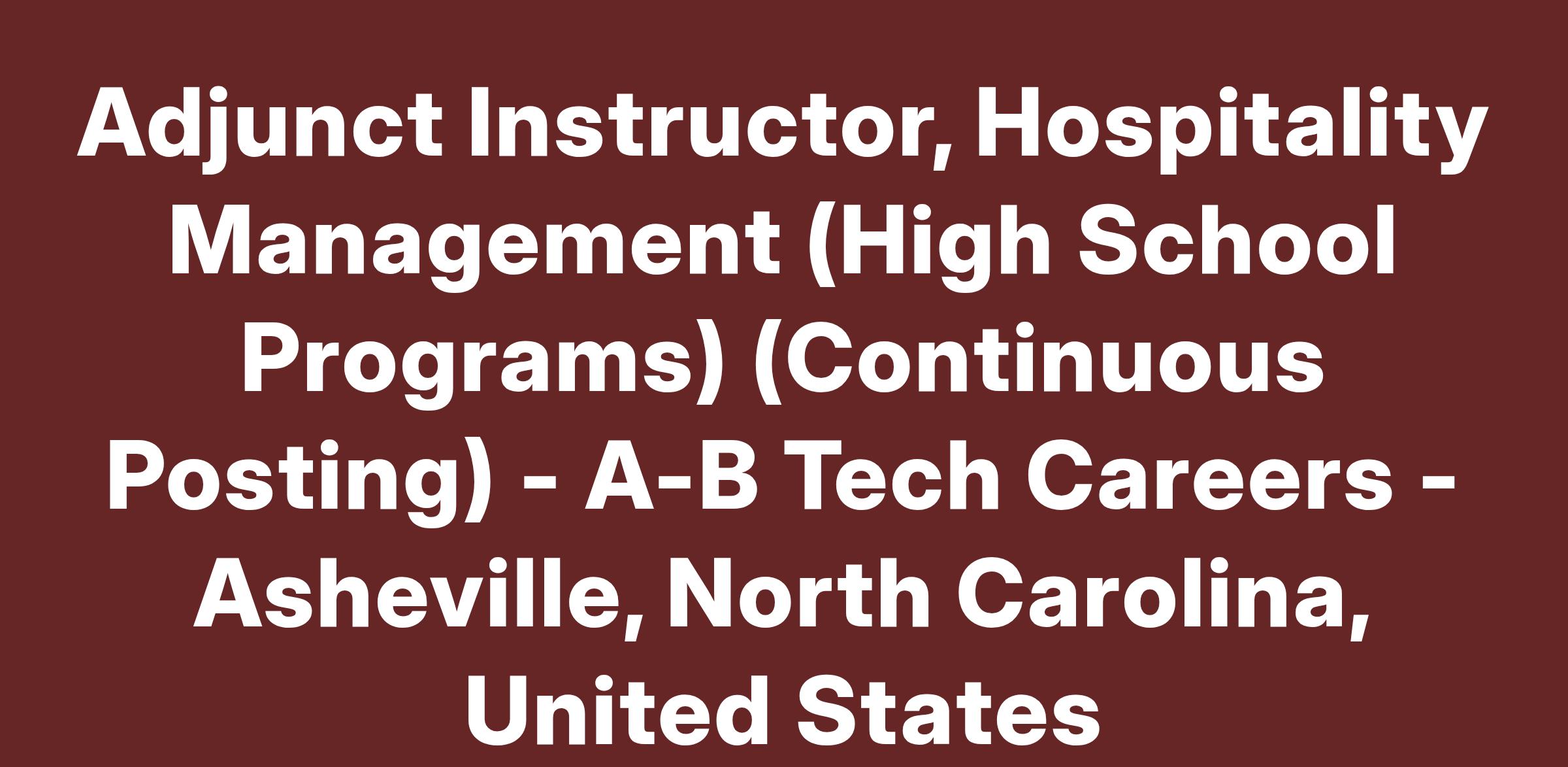 1. Bachelor degree or higher in Hospitality Management or related field; 2. At least five years of work experience in the Hospitality industry. 3. One or more years experience teaching instructional training programs at a community college or work-based training programs. 4. Experience using college information databases, such as Moodle, Canvas and WebAdvisor. 5. Experience with Sanitation and Safety in the Restaurant Setting, Restaurant and/or Club Management, Hospitality Law, Human Resources and Business Etiquette