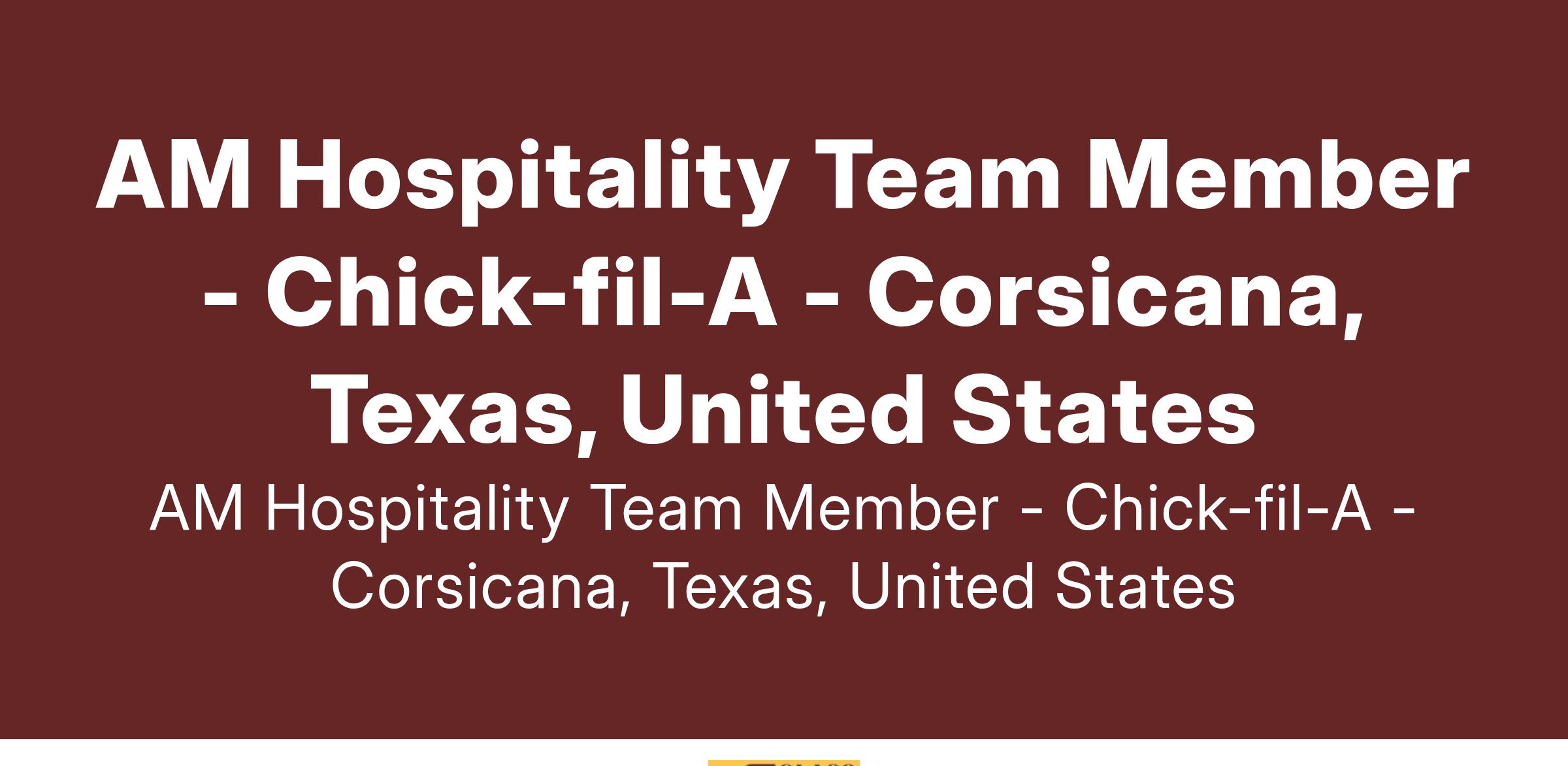 At Chick-fil-A Corsicana, we aspire to care for our community, and that starts with caring for each other. We do that by offering more than just a job: It’s an opportunity to learn and grow personally and professionally. We will provide you with great pay and benefits in a supportive, empowering work environment where you can learn new skills and make lasting, meaningful friendships.
