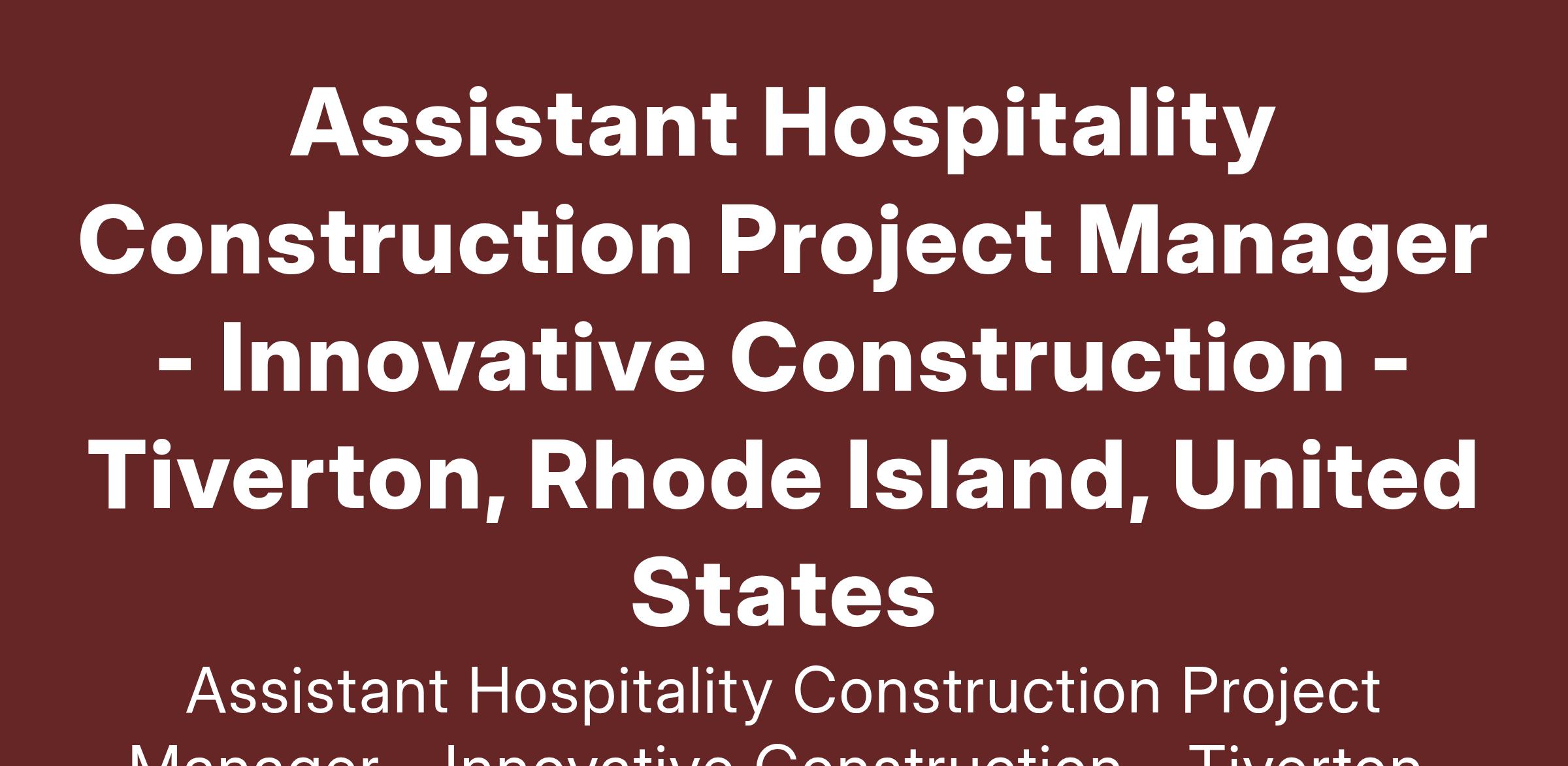 Assistant Hospitality Construction Project Manager - Innovative Construction - Tiverton, Rhode Island, United States