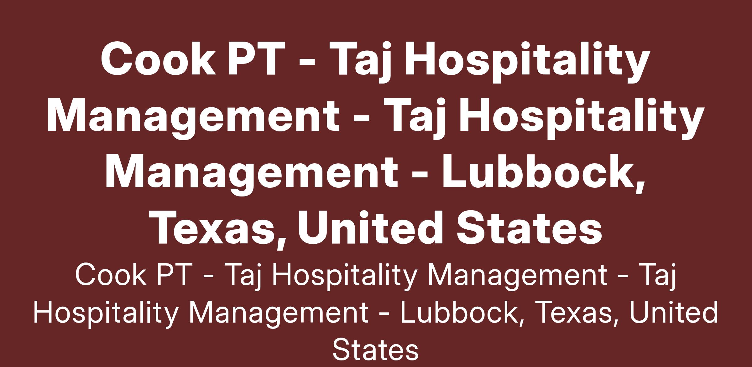 Seeking qualified applicants for Cook positions with TAJ Hospitality Management- managed hotels in Lubbock, Texas.