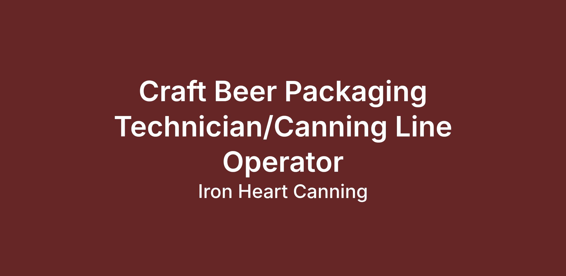 Iron Heart Canning is the quality leader in mobile beverage canning, our strive for operational excellence sets us apart from the competition. With warehouses operating in 27 states, Iron Heart provides onsite canning support for breweries, wineries, and other beverage manufacturers. This is a full-time position as an Advanced Canning Technician, whose responsibilities include setting up and breaking down equipment, ensuring all Clean-In-Place procedures meet Iron Heart standards, and operating and maintaining the canning line. Starting compensation is $20/hr with benefits for all full time employees including paid sick leave, paid holidays, PTO, and medical/dental insurance. This is the perfect opportunity for craft beer enthusiasts looking to get into the brewing world. Iron Heart encourages all employees to learn and grow in the industry, providing onsite training and guidance along the way.