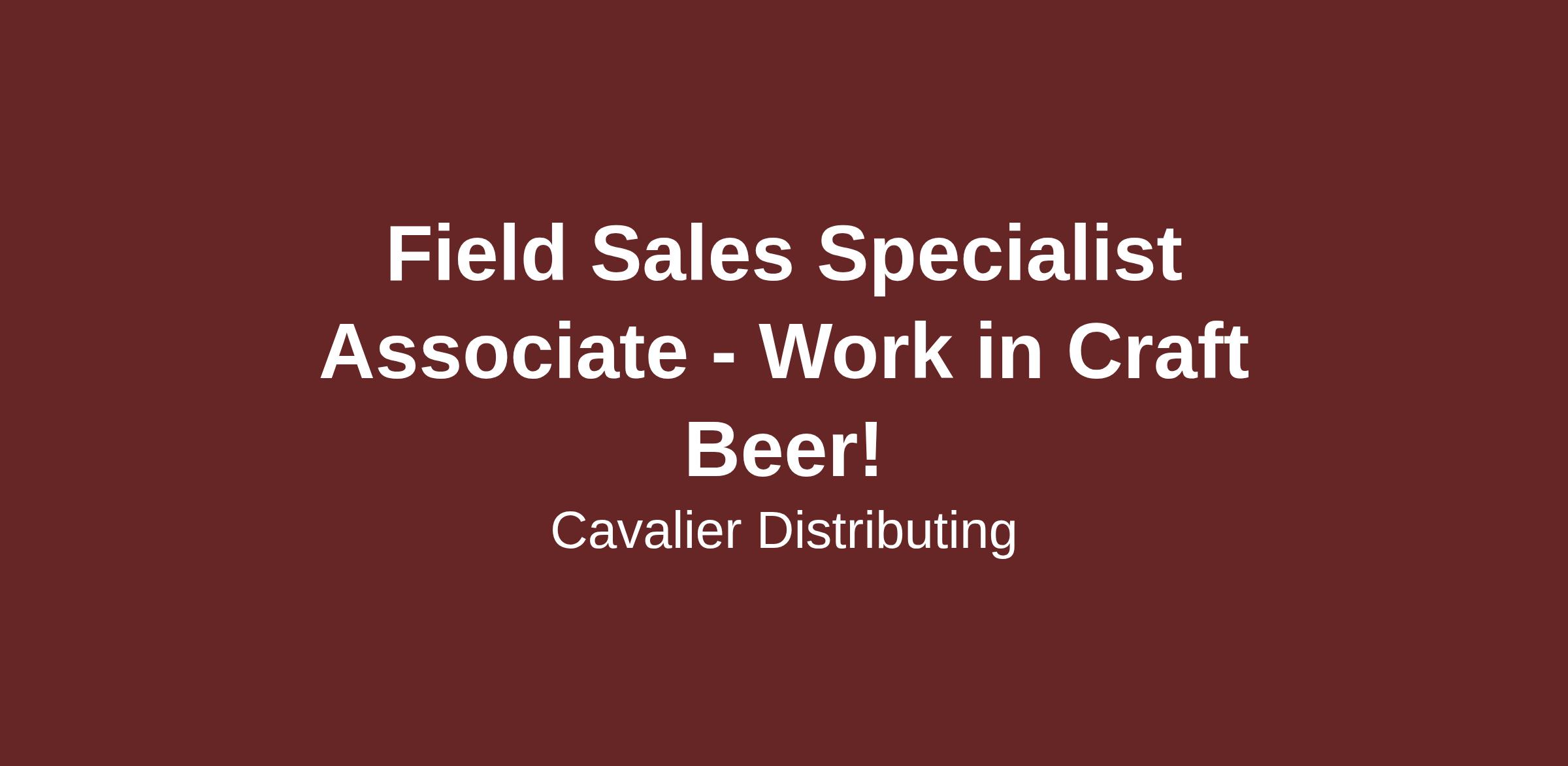 Job Description: We are currently seeking a motivated and enthusiastic individual to join our team as a Field Sales Specialist Associate for an assigned territory. This role offers an exciting opportunity to represent Cavalier Distributing Florida and our portfolio in the dynamic Florida market. The ideal candidate will possess a positive attitude, outgoing personality, professional demeanor, and a willingness to learn on the job.