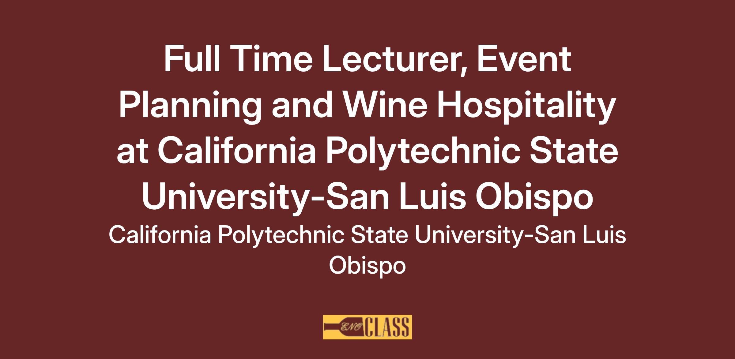 The Experience Industry Management (EIM) Department in collaboration with the Wine and Viticulture (WVIT) Department in the College of Agriculture, Food and Environmental Sciences at California Polytechnic State University, San Luis Obispo, CA, is seeking a two-year, full-time, academic year Full Time Lecturer in Event Planning and Wine Hospitality starting August 17, 2026. Rank and salary will be commensurate with qualifications and experience.