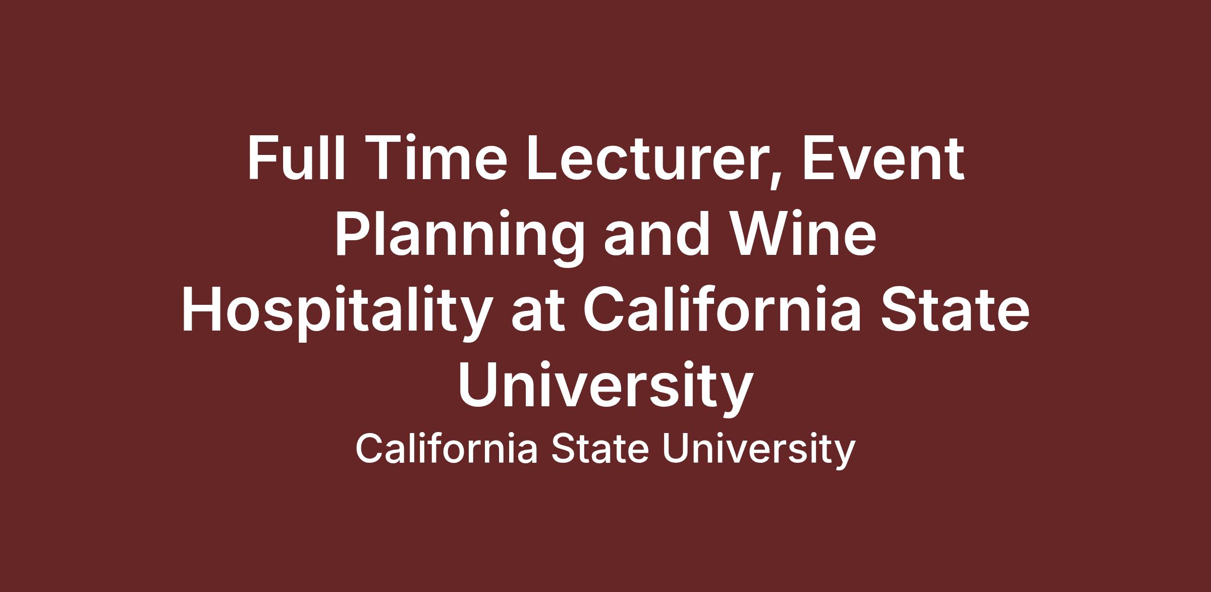 The Experience Industry Management (EIM) Department in collaboration with the Wine and Viticulture (WVIT) Department in the College of Agriculture, Food and Environmental Sciences at California Polytechnic State University, San Luis Obispo, CA, is seeking a two-year, full-time, academic year Full Time Lecturer in Event Planning and Wine Hospitality starting August 17, 2026. Rank and salary will be commensurate with qualifications and experience.