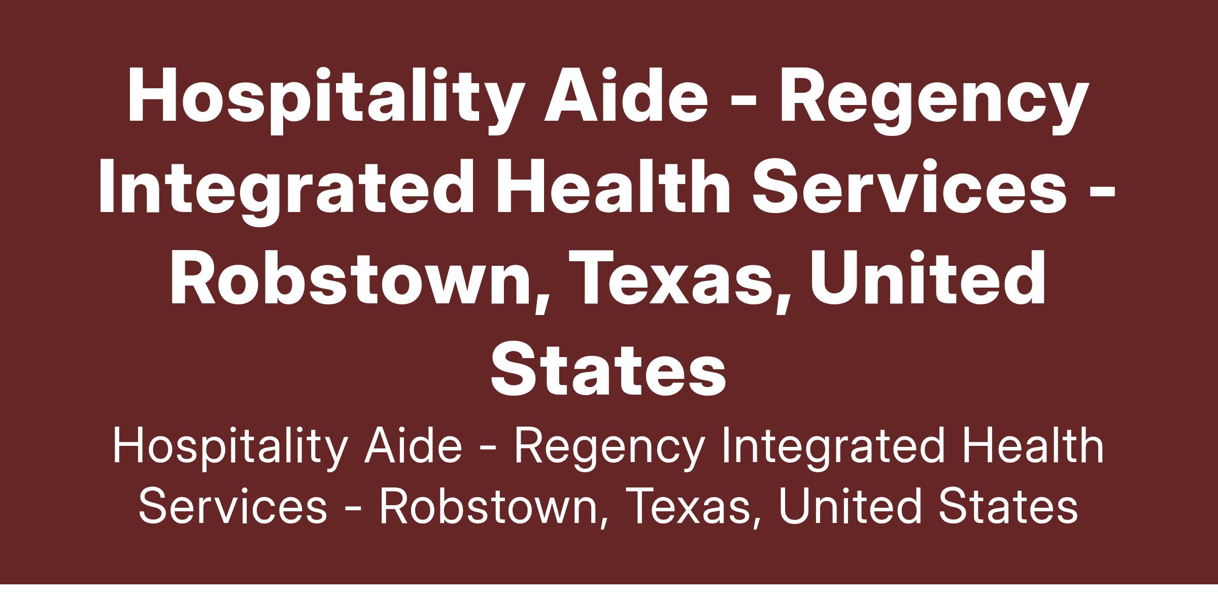 Hospitality Aide - Regency Integrated Health Services - Robstown, Texas, United States