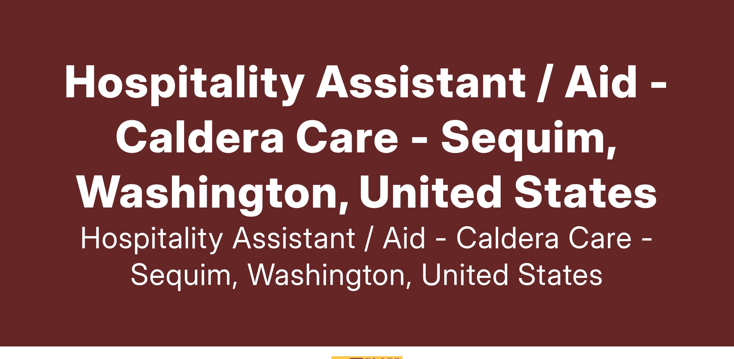 Hospitality Assistant / Aid - Caldera Care - Sequim, Washington, United States