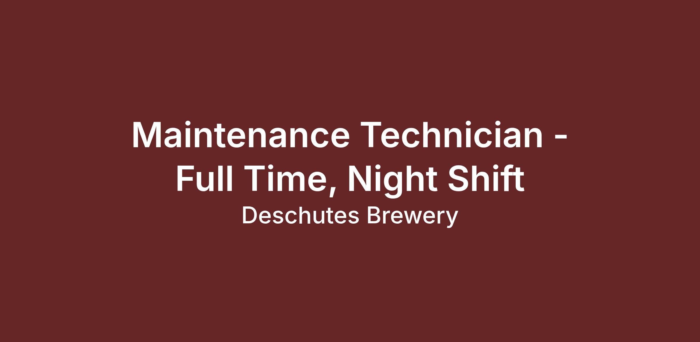 Deschutes Brewery is currently hiring for a Full-Time Maintenance Technician! The typical schedule for this role is 4-10s (10 hour shifts, 4 days a week) from 7pm to 5:30am; actual schedule will be based on business need, and will include weekend shifts. Compensation offered to the candidate hired into this role depends on previous experience, skills and education/certifications and starts at a minimum of $25.25 per hour, with an additional $3.00 per hour more for night shift differential (for any hours worked between 6pm and 6am). This position offers a career path up to $37.30 per hour for our Maintenance Tech employees who successfully complete our internal training program and hold several years of experience working for us. Additionally, we offer more opportunities for wage increases also associated with cross-training, promotional opportunities and trade specialization (i.e. LME, Journeyman Electrician, HVAC, etc.)