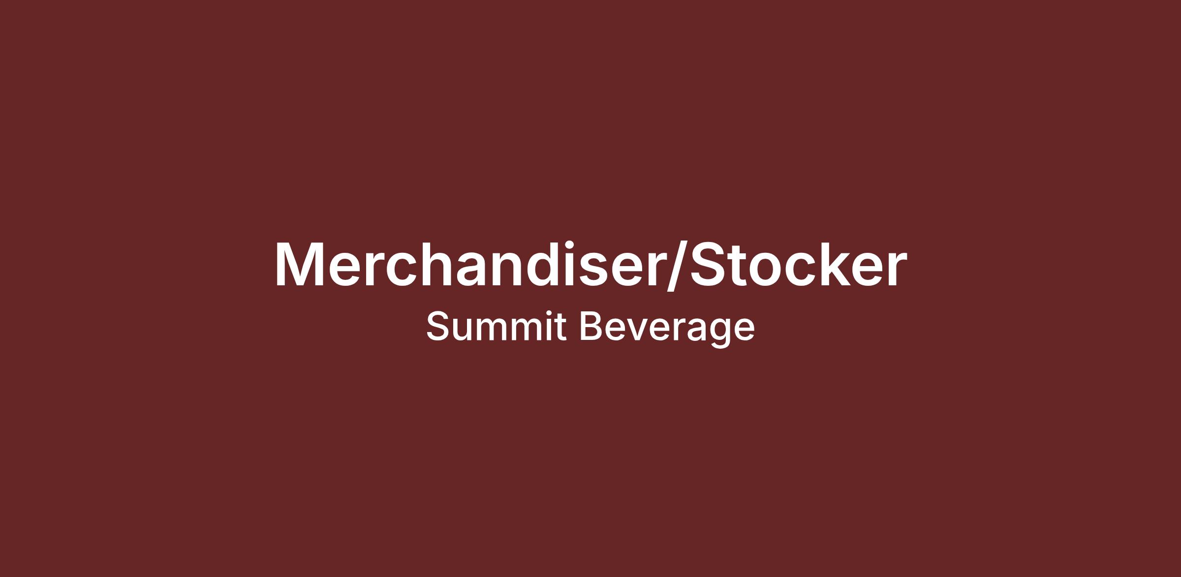 Responsible for product merchandising within large volume stores. Duties include stocking shelves, rotating product, setting up displays, cooler stocking/rotation, storage room organization, and the efficient movement of product from storage to the sales floor.