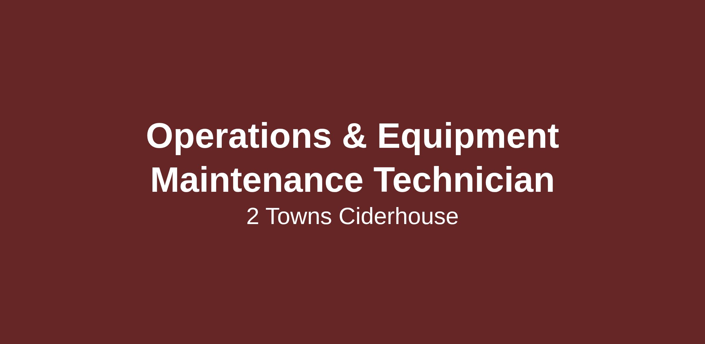 2 Towns is seeking an experienced Operations and Equipment Maintenance Technician to join our team. The Technician is responsible for operating, maintaining, troubleshooting, and improving mechanical and electrical equipment and robotic systems in a manufacturing environment, emphasizing employee safety as the top priority.