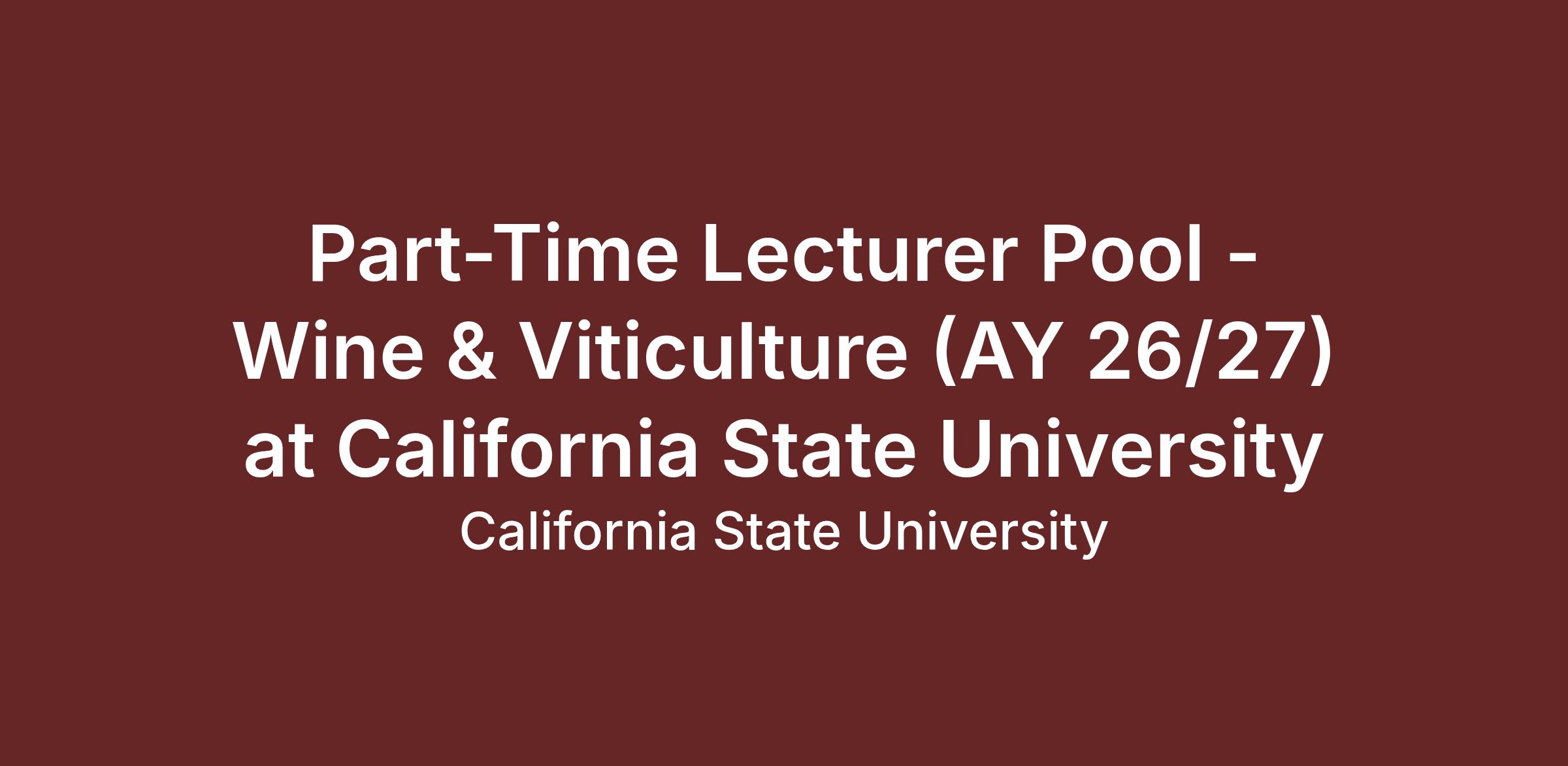 WINE AND VITICULTURE PART-TIME LECTURER POOL. The Wine and Viticulture Department within the College of Agriculture, Food and Environmental Sciences at Cal Poly is seeking applications for a pool of part-time lecturers with positions available as determined by need during the 2026-2027 academic year. Lecturers in the Wine and Viticulture Department may teach undergraduate lecture and/or laboratory sections in one or more of the following areas: viticulture, vineyard production and management; grapevine physiology; winemaking; wine analysis; wine chemistry; wine microbiology; wine history and culture; wine sensory analysis; and wine business, marketing and sales. Other assignments could include program support and senior project management.