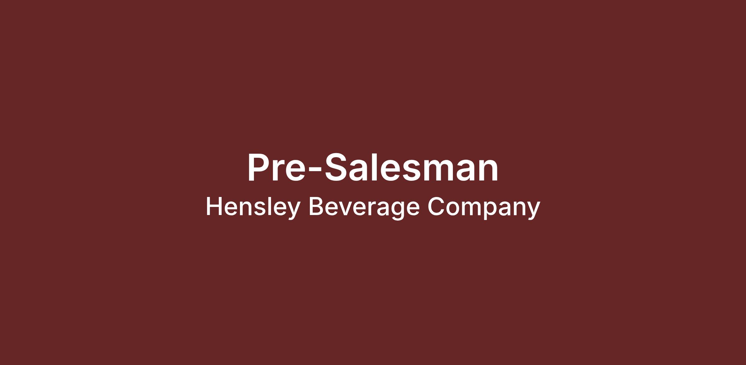 Hensley Beverage Company is looking for a skilled Salesperson. In this role you will be responsible for the sales and merchandising of products and providing excellent customer service to our customers.
