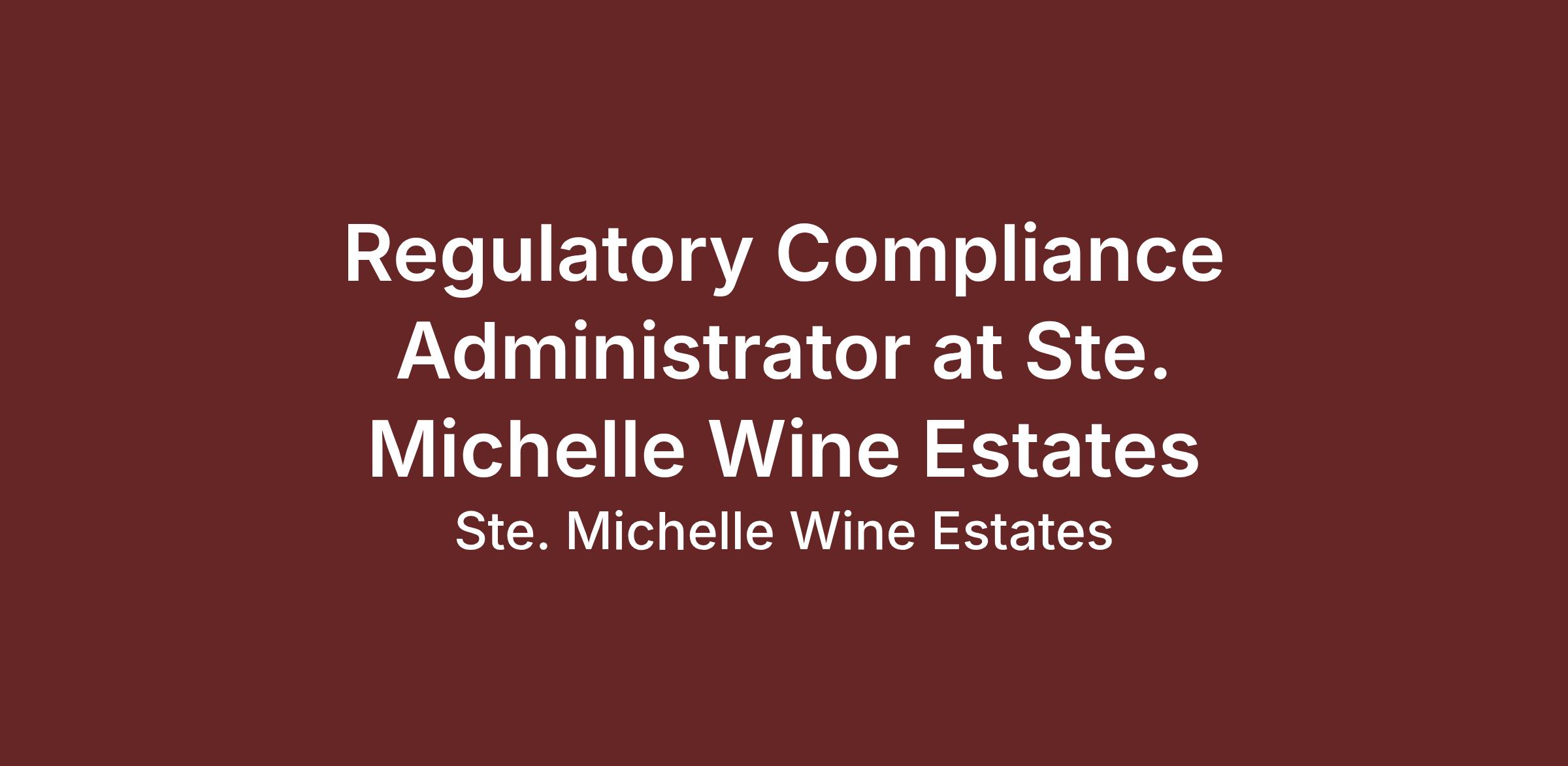 Ste. Michelle Wine Estates (SMWE) is seeking a Regulatory Compliance Administrator to join our team in Woodinville, WA. This critical role will prepare and submit documents to state agencies and other governmental entities to apply for and renew state label registrations. As assigned, the Regulatory Compliance Administrator completes other compliance requirements of the Company.