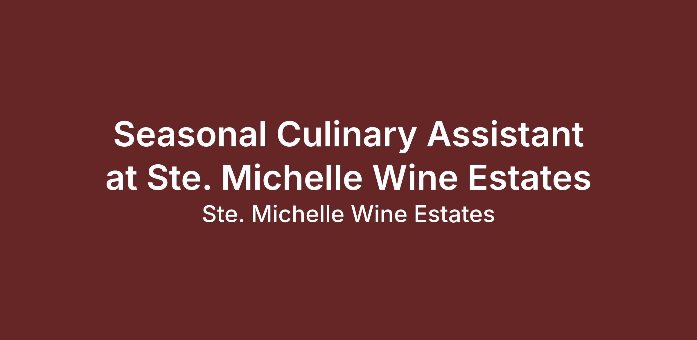 A seasonal, part-time Culinary Assistant job in Woodinville, WA is available at Chateau Ste. Michelle. As a Culinary Assistant, you will serve as an ambassador of the company, exemplifying excellence in customer service. You help set the tone for the winery experience and will ensure that every guest feels a positive and genuine connection with the winery.