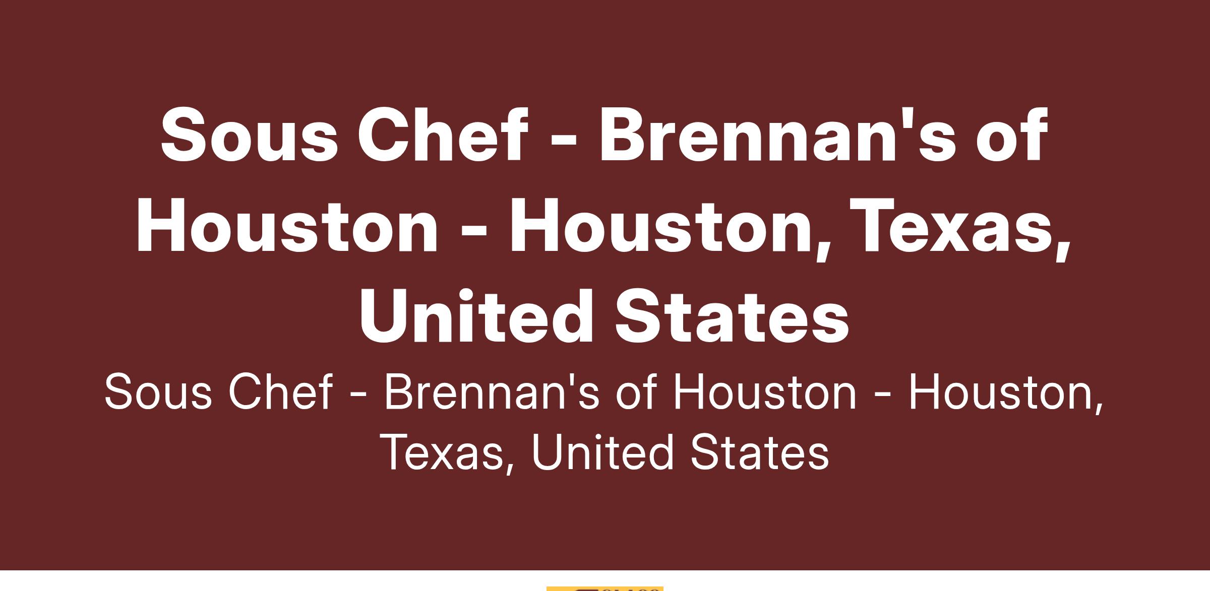Take this opportunity to join our award-winning team! A minimum of three years of sous chef experience in a high-volume fine-dining atmosphere is preferred. We foster an environment of growth, mentorship and warmth at Brennan's of Houston. All applicants must embrace and contribute to our company culture. A full job description can be provided upon interview.
