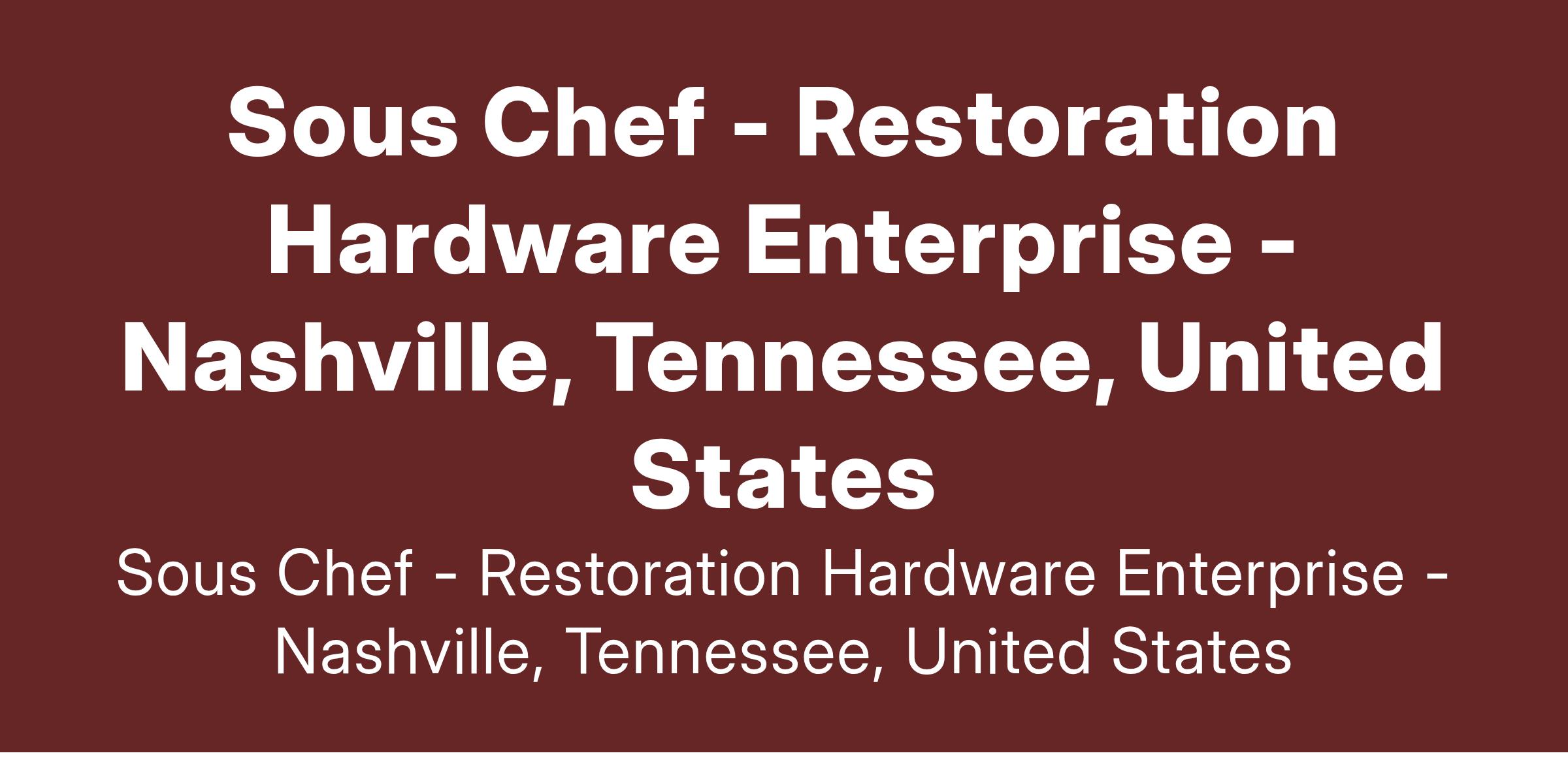 RH is seeking a Sous Chef to join our team in providing world-class guest experiences while taking great care of our equipment and facilities.