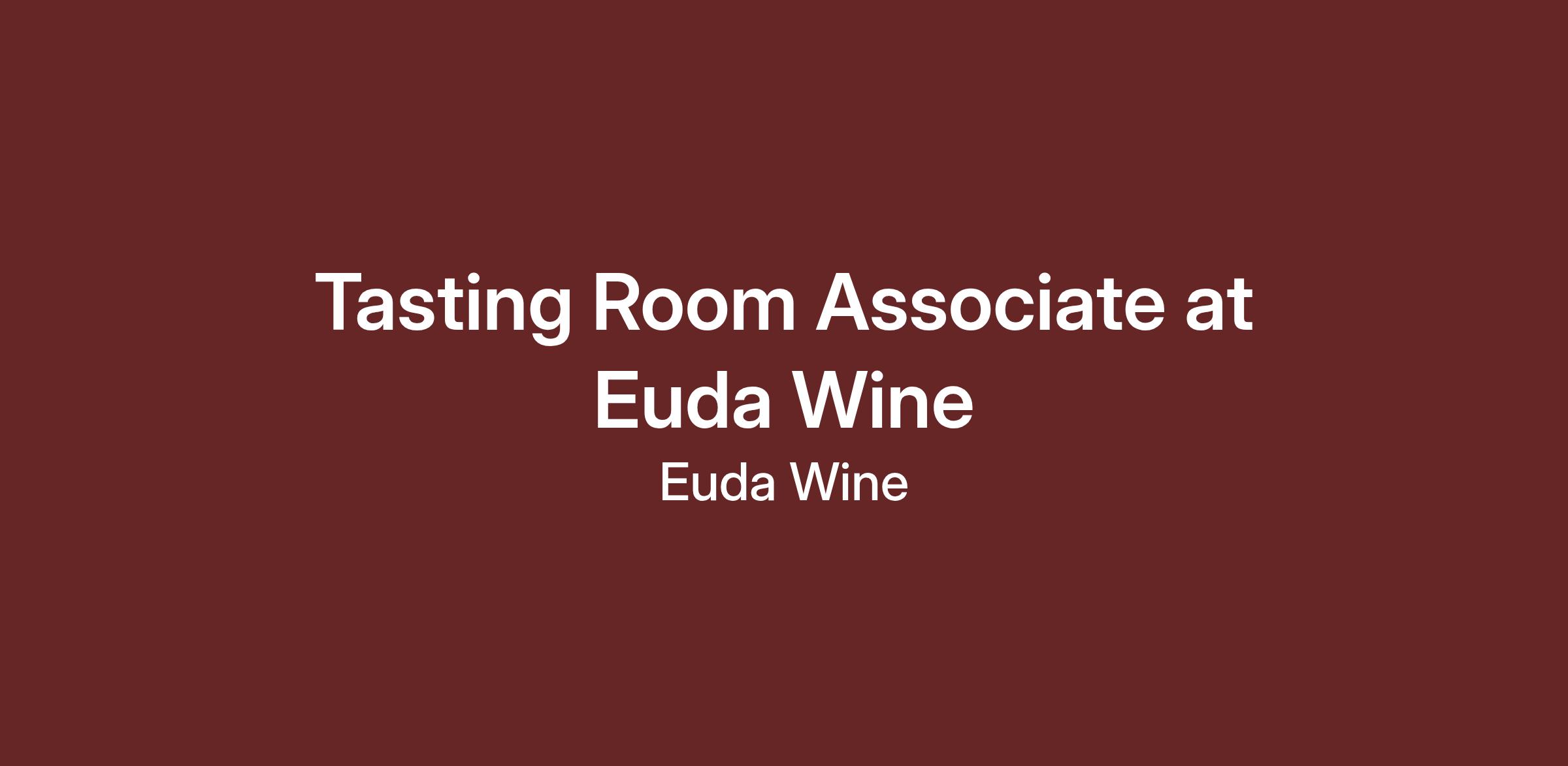 Euda Wine is seeking a weekend Tasting Room Host to run our tasting room on Saturdays and Sundays. We’re looking for someone who enjoys creating a welcoming, community-minded experience and is comfortable working independently.