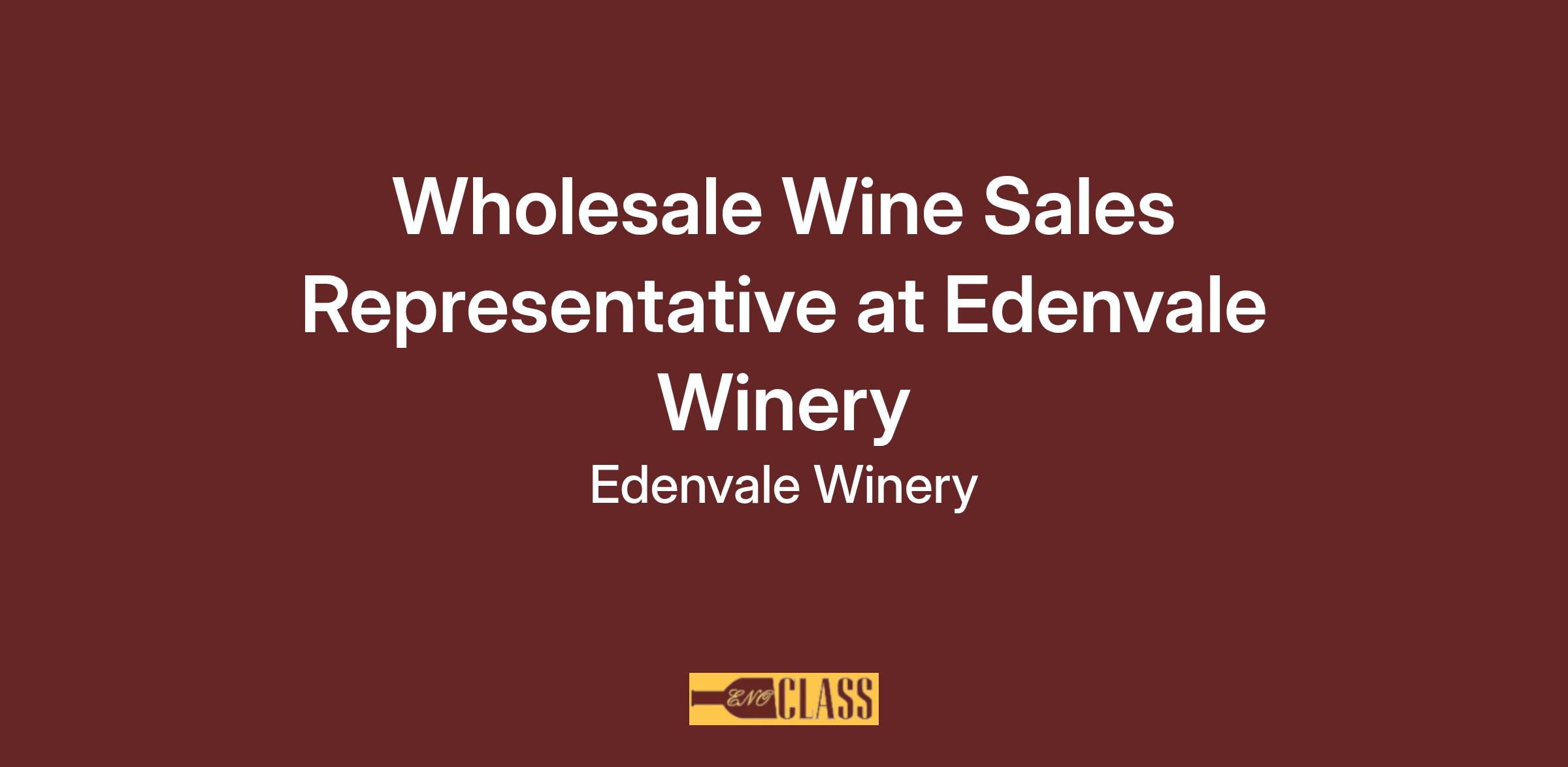 Edenvale Winery is looking for an experienced sales representative for our wholesale wine customer accounts. The sales territory includes Jackson, Josephine, Klamath and Curry counties. We have long-term established customer accounts. Company vehicle provided.