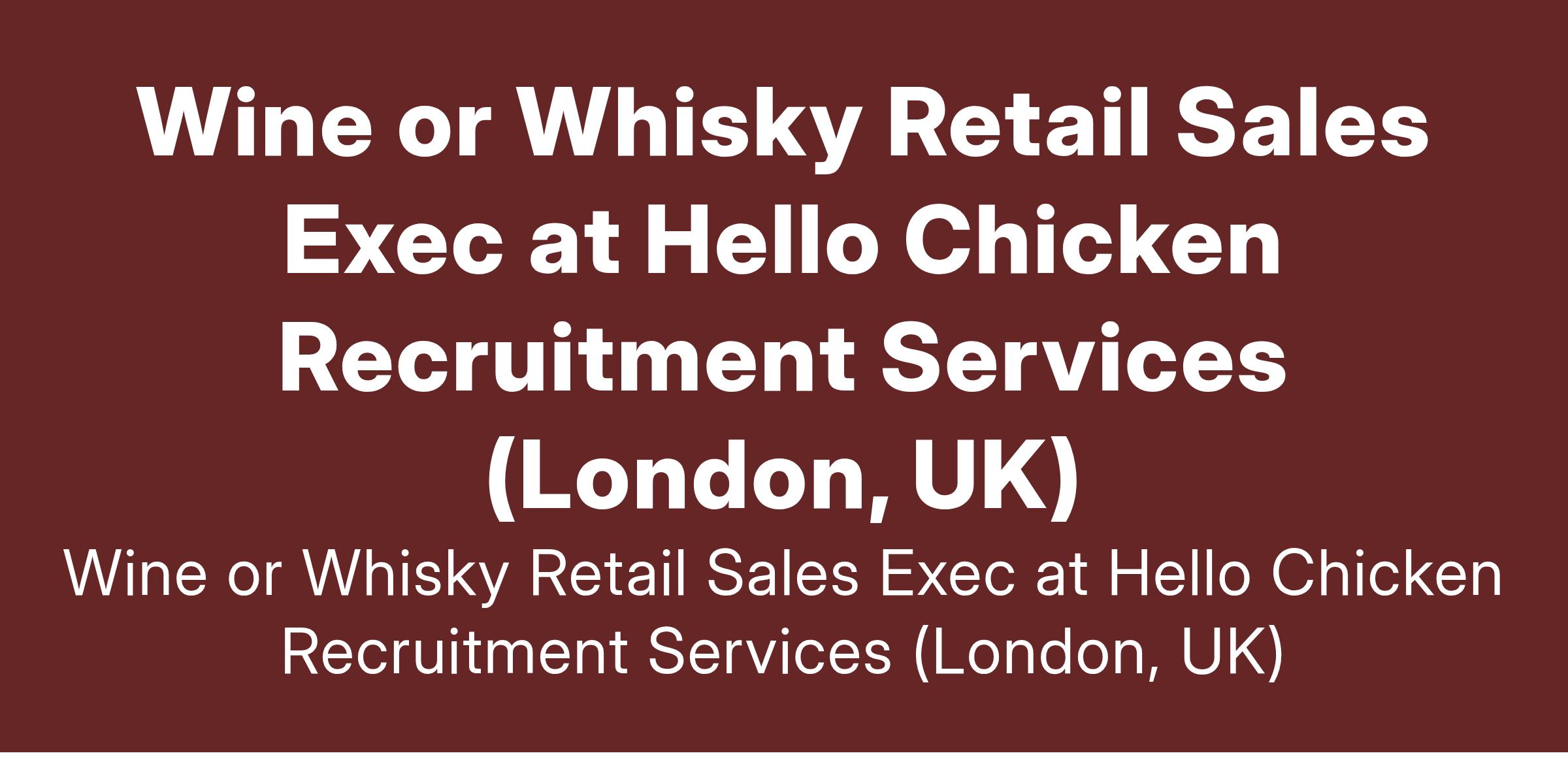 Wine or Whisky Retail Sales Exec at Hello Chicken Recruitment Services (London, UK)