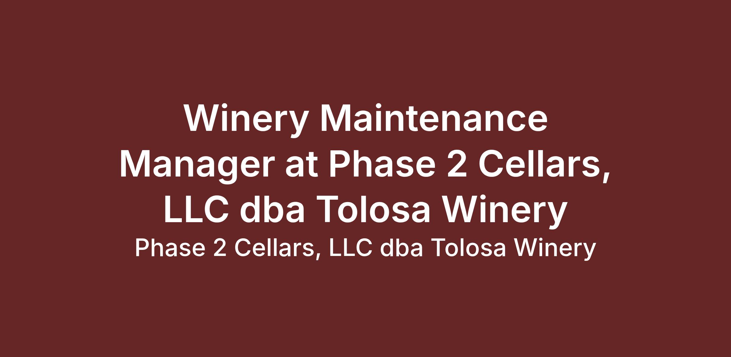 The Winery Maintenance Manager (WMM) is responsible for overseeing the maintenance and repair of all winery equipment and infrastructure. This role ensures that all production and facility operations run smoothly and efficiently, minimizing downtime and maintaining high-quality standards. The WMM will accomplish tasks by tending to them personally, utilizing trained staff, and/or working collaboratively with third party support teams. The position requires strong technical skills, leadership abilities, and a keen understanding of winery operations.